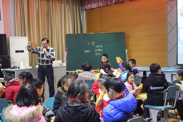 程卫华老师通过让学生读背二十四节气歌和观看微视频引出小雪节气,并让孩子们讨论了和小雪这个节气相关的农事活动,引导孩子们进行“剥玉米籽”比赛,使孩子们在活动中既体会到劳动的艰辛和感受到劳动人民的智慧,又让学生受到了爱惜粮食教育。朱晓赛老师用她极具智慧的课堂艺术深深地吸引着孩子们。孩子们尽情地遨游在《兔子的十二个大麻烦》这本绘本中。在老师的不断引导和鼓励下,孩子们不断发现绘本中的新知识,学会了阅读绘本的新方法。邓雯雯老师的课堂激情四射。优美的多媒体画面和老师极具亲和力的口语仿佛使学生置身于世界各地游览之中,学生利用移动数字学习终端查找自己心目中的旅游目的地天气状况、美食、风土人情等信息,活跃了课堂气氛,又使学生学到了新技能。