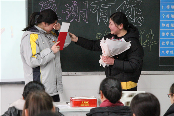 胡友华说,现在的孩子都是家庭的中心,很多人心中只有自己,没有别人。他们大多认为父母的关爱是应该的,作为父母理应为他们服务。从来就不知道体贴父母,关心父母,理解父母。甚至把父母的关心当做负担。基于部分学生习惯于接受,而不知道付出、不知道回报这样一个不容忽视的现实,他精心设计,与家长会有机结合,开展“感恩之心,常伴身边”活动。使学生常怀感恩之心,感激和怀想那些有恩于我们却不言回报的每一个人,并在班级内形成了浓厚的感恩文化。学生拥有了感恩之心就会更加热爱班级、学校、家乡、祖国,就会对他人充满爱心,也就拥有了做一位高尚的人的思想基础。