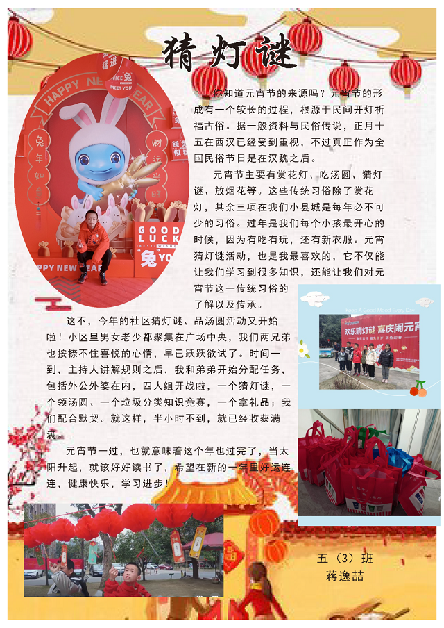 2023年春节与众不同:春节前,大家为了防疫紧张惶恐;春节时,疫情似乎消失不见了,各地沉浸在热闹喜庆之中。遂昌县育才小学少先队组织开展了“红红火火过大年”主题实践活动,下面我们一起来看看队员们活动在成果吧!