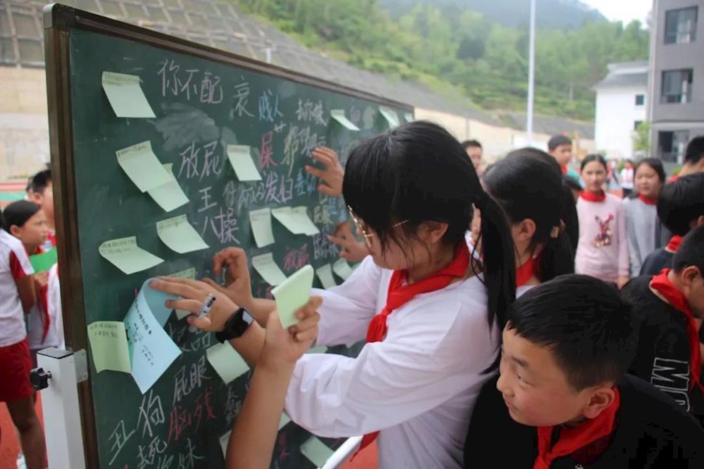 一张张便利贴上写着一句句温暖抚慰人心的话语。在“与爱同行,拒绝语言暴力”环节中,同学们擦去内心的不良言语,留下了一张张“悄悄话”。那些记录温暖的彩纸,也把冰冷的黑板装扮得五彩缤纷,治愈人心。