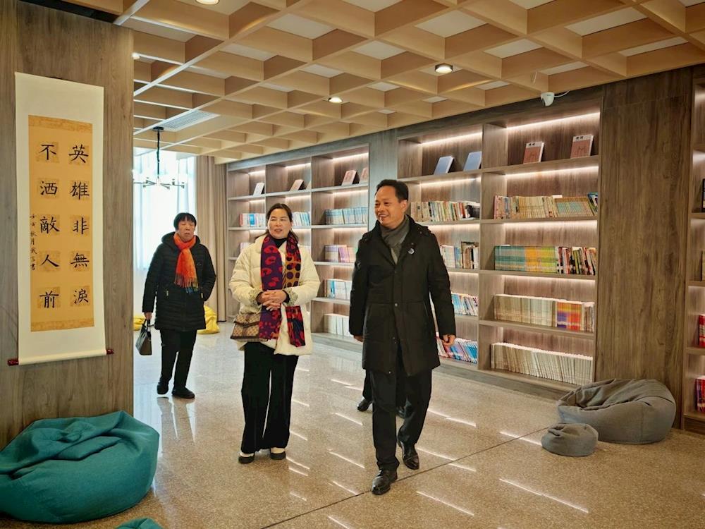 茶话会开始前,毛卫华和周陈根带领退休教职工们参观校园新貌。独具特色的美术教室、焕然一新的图书馆,每一处都散发着独特的魅力。