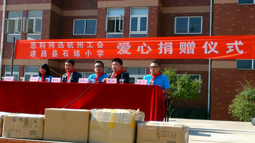 近日,杭州思科网迅研发中心来到石练小学,为石练小学的孩子们带来了爱心图书和体育器材。他们走进课堂,和孩子们一起学习,一起游戏,开心互动;他们还深入到贫困学生家中了解情况,并送上慰问金。