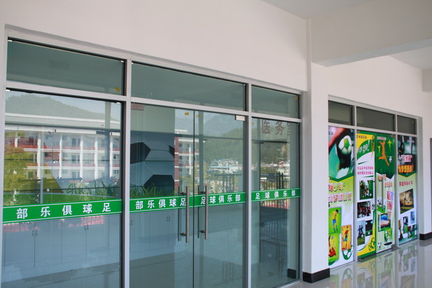 该装备室位于校体艺馆二楼,面积约100平方米,共两间。一间为球队装备和更衣室。另一间为荣誉室,由荣誉墙、运动员风采、足球知识三部分组成。该荣誉室以翔实的文字和生动的图片以及学校足球队历年来所获奖杯、奖牌、锦旗,全方位、多角度地展示了学校足球教育的办学成果。