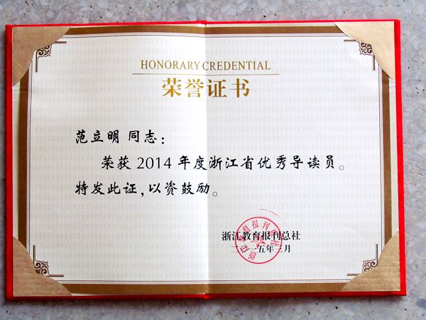 在刚刚结束的全省中小学课外阅读先进集体、优秀导读员表彰会议上,遂昌民族中学被浙江教育报刊总社授予“浙江省2014年度课外阅读先进集体”称号,同时该校的范立明老师被评为优秀导读员。