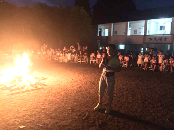 忙碌了一天,当夜幕降临的时候,新路湾小学的操场上又热闹了起来。篝火点着了,音乐响起来,歌声扬起了,大家最爱的篝火晚会开始了。孩子们围在篝火旁快乐的舞动着,校园里成了一片欢乐的海洋。童年的欢乐与节日的喜悦都随着熊熊的火焰直上九霄,把学校的天空装点的更加绚烂多姿。