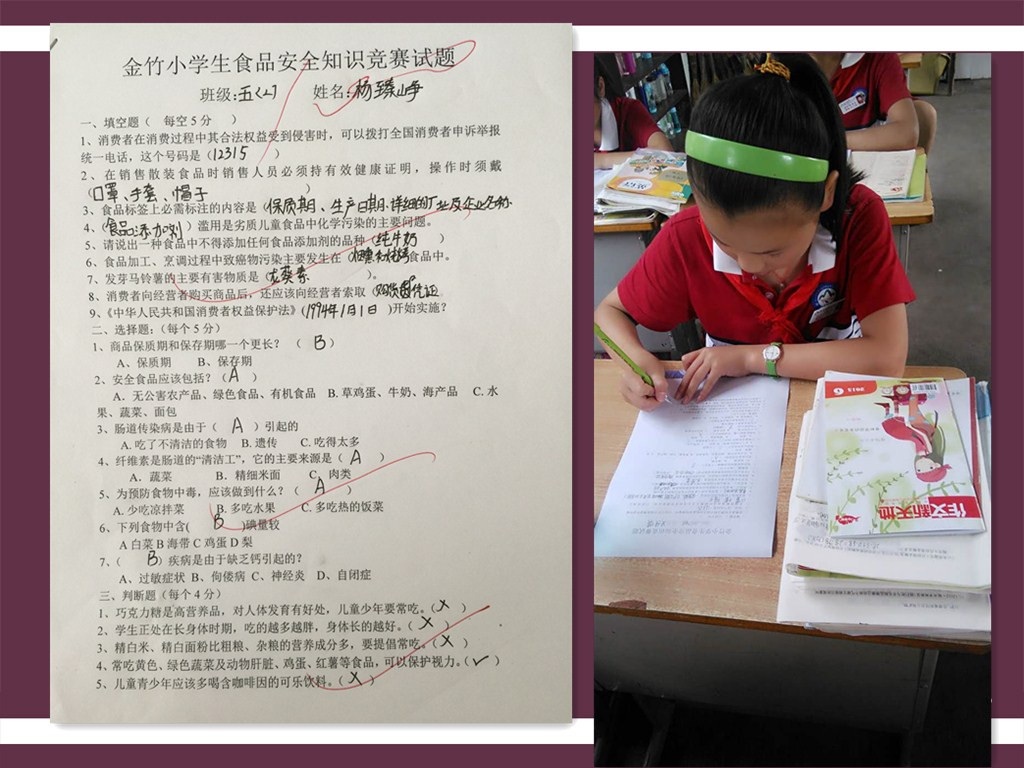 为更好的普及食品卫生安全与营养知识,增强学生的食品安全意识,教育和引导学生培养良好的饮食习惯,6月17日下午,金竹小学政教处组织全校学生开展了食品卫生安全知识竞赛。
